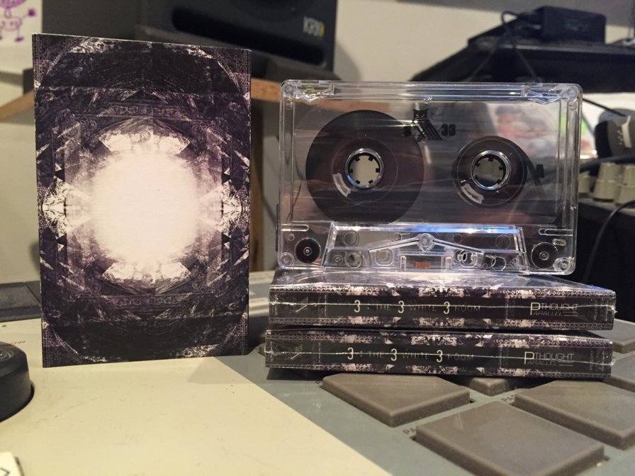 Originally included as the last track on on 3:33’s In The Middle of Infinity CD, The White Room was once a 41-minute, 10-second “album within an album.” A conceptual and sonic bridge to the Bicameral Brain double-disc, The White Room has always taken on a dichotomous character, being initially described as “Inhabited by two mysterious figures,” and a place that “implodes and expands unboundedly in every direction upon being perceived.” Considering this, it makes sense for 3:33 to re-imagine the room on cassette (edition of 90 available here), a two-sided medium perfectly suited to convey the ambient drone of negative space.