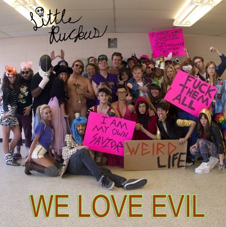 Fairfield is kind of a strange city. The small beacon of art and creativity in the middle of rural Iowa is home to a transcendental meditation university, an annual benefit concert sponsored by the David Lynch Foundation, and a whole collective of creative kids who stave off boredom by filtering nearly every musical genre imaginable through their own brand of electronics and dance music. “Low Cash,” the lead single to the Little Ruckus debut album We Love Evil, is like a mission statement for that entire bored, adolescent community of Fairfield. The song gradually piles layers of chant-punk vocals over screaming trance-like synthesizers, and dance beats that sound like Dan Deacon leading a marching band. I suppose if you are going to be stuck in the middle of Iowa, you might as well embrace it and dance your ass off. Weird Life.