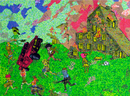 For no less than two thirds of my life, I’ve been a doodle addict. I think it’s safe to say that all of us were, at some point or another. Hopefully none of you had the somewhat traumatic experience I had in the sixth grade when my English teacher deducted a full letter grade from an assignment because I made the absentminded decision of doodling cute little dragons in the margin of my Old Yeller notes. When you think about it, doodling isn’t merely an act of scratching out stick figures on the back of worksheets or old Rite-Aid receipts. It’s a ritual, a chance to take the ugly blue-lined landscape of a notebook and breathe a little life into it, or at least enough life to keep you from falling into a bored slumber. Brian Chippendale understands this distinction, and from it, he has derived the video for Black Pus’ “1000 years,” a digitized flip-book of doodles from his schoolboy years. Against the yellowed, planar backdrop, knights clash swords, dragons spew fire, and floating eyeballs shoot death rays. A hero appears, then vanishes. It’s an elementary-school epic, nostalgic for the days where our imaginations ran free, complete with a frantic, boyish soundtrack.