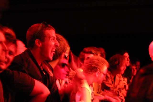 Hot Snakes (labeled on the marquee as “Hot Shakes,” fortunately not the Pepto Bismol house band) followed Red Fang and surpassed my even-higher expectations. Their set was a full-blown fury; they probably gunned through about 75 percent of their material, even playing a cover of Drive Like Jehu’s “Bullet Train to Vegas” during the encore. Hot Snakes’ energy and enthusiasm had a visible effect on everybody. Taking pictures from the security barricade, I turned around to see a rather excited fan screaming along to every word.