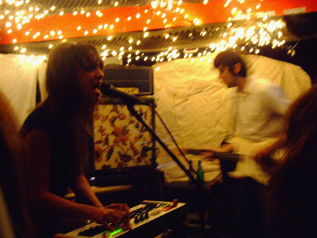 I squeezed my way to the front, so close to the speakers that I couldn’t hear the vocals properly, and realized I was surrounded with, well… geeks like me. There was a girl taking photos for Pitchfork and a guy from AAM chatting up some other guy who was apparently in a band. One dude, clutching a $3 can of Sparks and looking like he’d already had a few too many, kept pushing to the front to snap Polaroids. There was even a palpable indie-celeb presence — Ira Kaplan of Yo La Tengo was on hand to cheer on his wife/bandmate Georgia Hubley, who’s also part of Mad Scene, the evening’s opener. The whole thing felt like a CMJ showcase, and I started to hate myself a little bit.