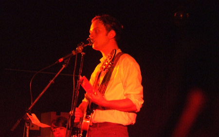 Perhaps Andrew Bird made me snooze a little because my heart that night belonged to Jens Lekman. The swede was up next, armed with a guitar, a backing tape, and a white cotton shirt -- on it, a huge embroided flower and his heart on his sleeve, of course. He’s the cheesiest guy around, and it’s not just because he’s Swedish. Tonight, Jens is also astoundingly funny, bracketing the songs that everyone seems to know (from his past two albums) with hilarious stories and anecdotes detailing the background of the songs, which are undeniably sincere and real. The two local musicians on cello and violin who join him this evening don’t play very often, and halfway through are off the stage, so the backing tape fleshs out tracks like “You Are The Light” and “Maple Leaves.” His take on the live show is entertaining, like a good show should be, even if a few of the songs are much better on record.