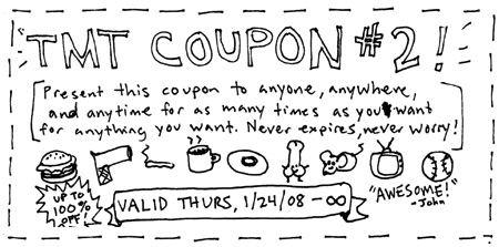 But why stop with music? Going to the supermarket to pickup some bananas? Use the coupon! Co-workers giving you a hard time at work? Dude, use the coupon! Can't quite manage to keep the neighbor kids off your freshly cut lawn?? Use this motherfucking coupon!! It's applicable in virtually every aspect of your life.